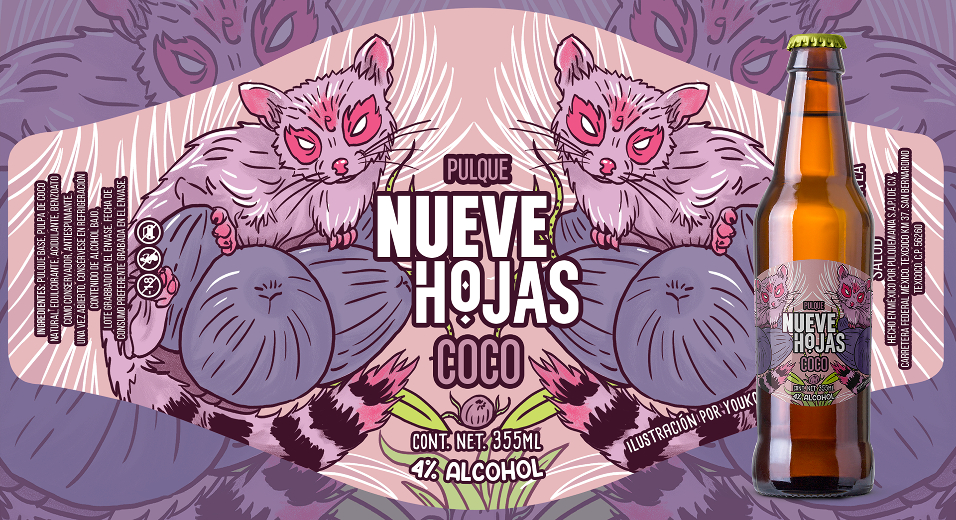 Diseño e ilustración de etiquetas para Pulque 9 hojas