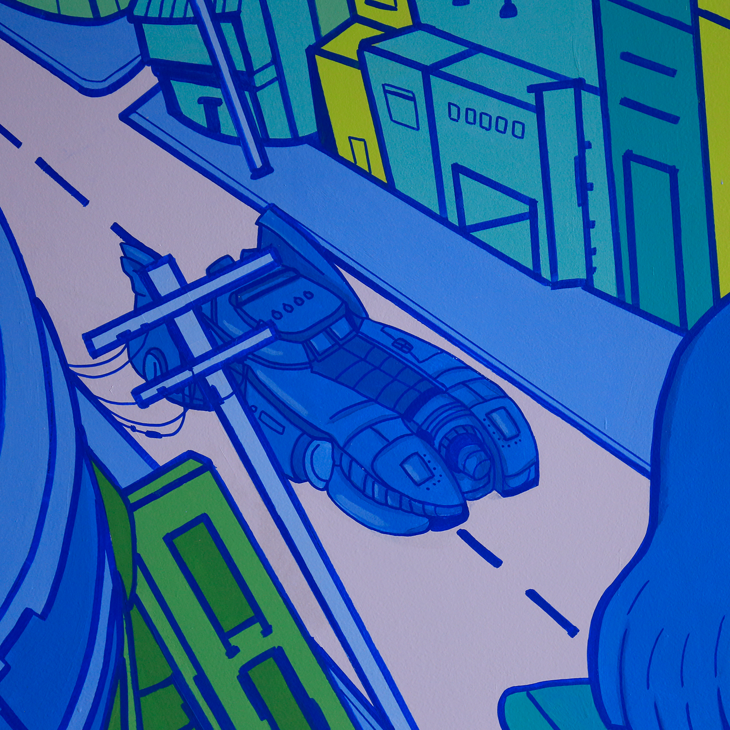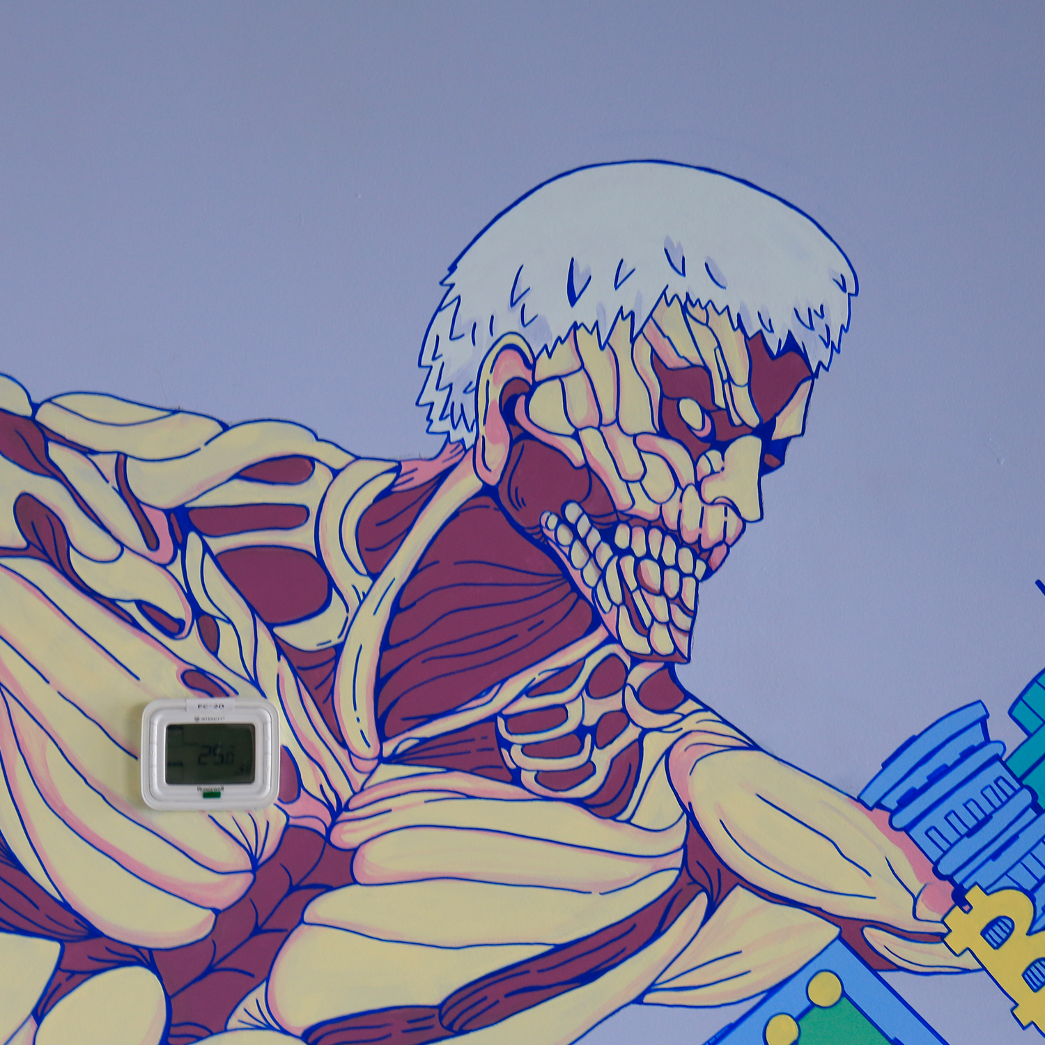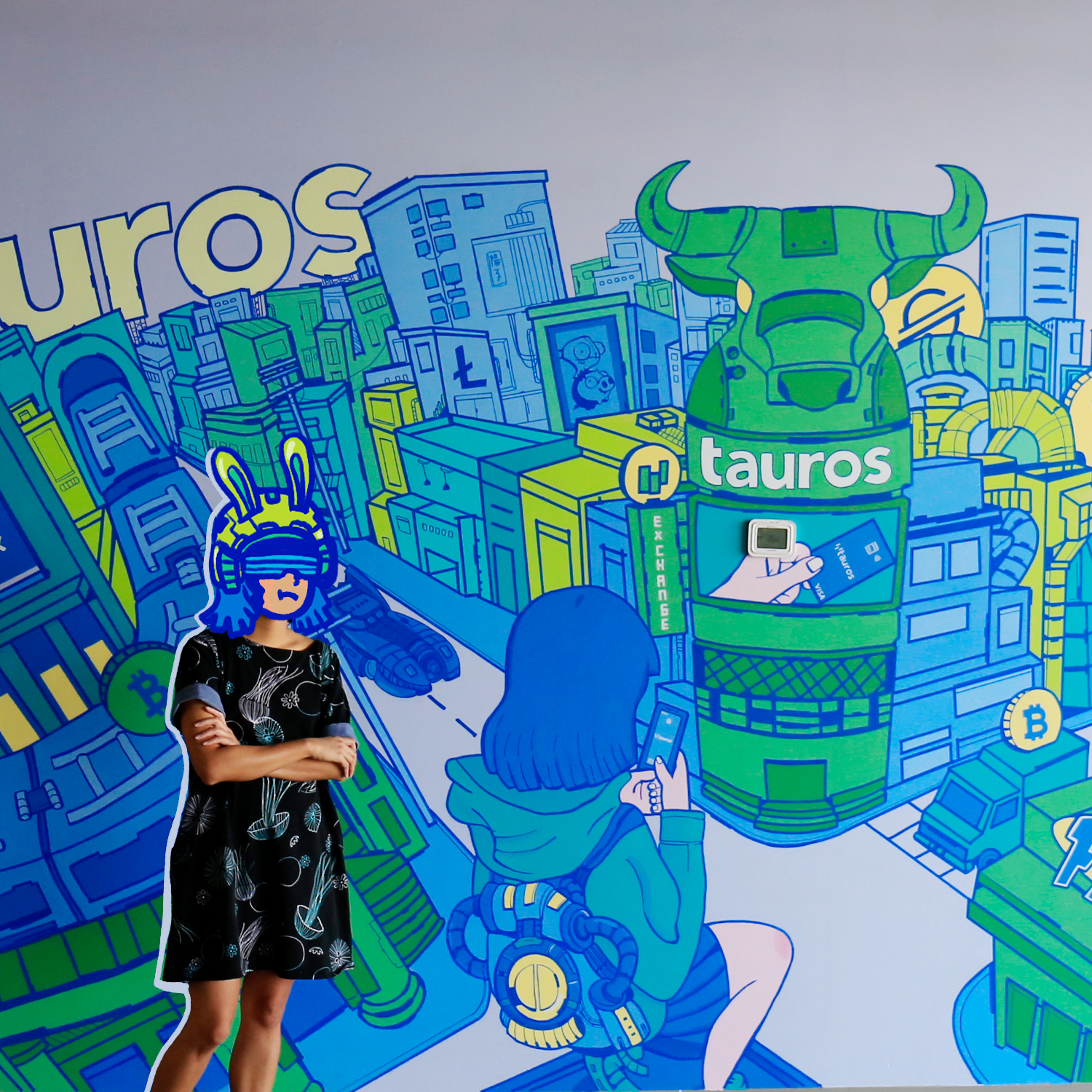 Mural hecho con pintura vinílica y delineado con marcadores Mololtow para las oficinas de Tauros ubicados en la Torre Mitikah, Coyoacán, CDMX.